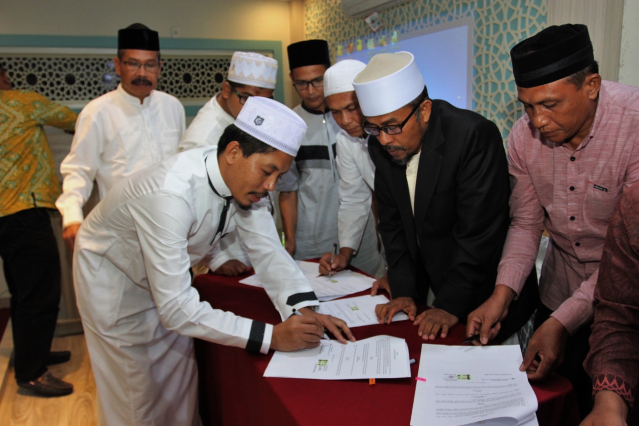 Banda Aceh | Toa – Dinas Pendidikan Dayah Aceh pada Rabu malam (12/06/2019) menandatangani Memorandum of Understanding (MoU) dengan teungku-teungku dayah untuk magang kursus bahasa Arab dan Inggris ke pulau Jawa. Penandatangan kesepatan tersebut dipimpin langsung oleh Kepala Dinas Pendidikan Dayah Aceh, Usamah El Madny di Hotel Hanifi Banda Aceh.