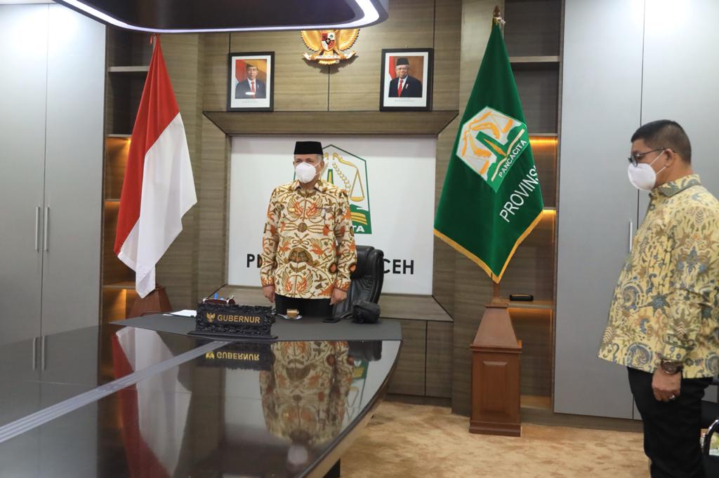 BANDA ACEH – Gubernur Aceh Nova Iriansyah mengikuti Rapat Koordinasi Pembangunan Nasional (Rakorbangnas) Badan Meteorologi, Klimatologi, dan Geofisika (BMKG) Tahun 2021 yang diselenggarakan secara virtual, Kamis (29/7). Kegiatan itu dibuka langsung oleh Presiden RI, Joko Widodo serta dihadiri Ketua DPR RI, MPR, para menteri serta sejumlah gubernur.