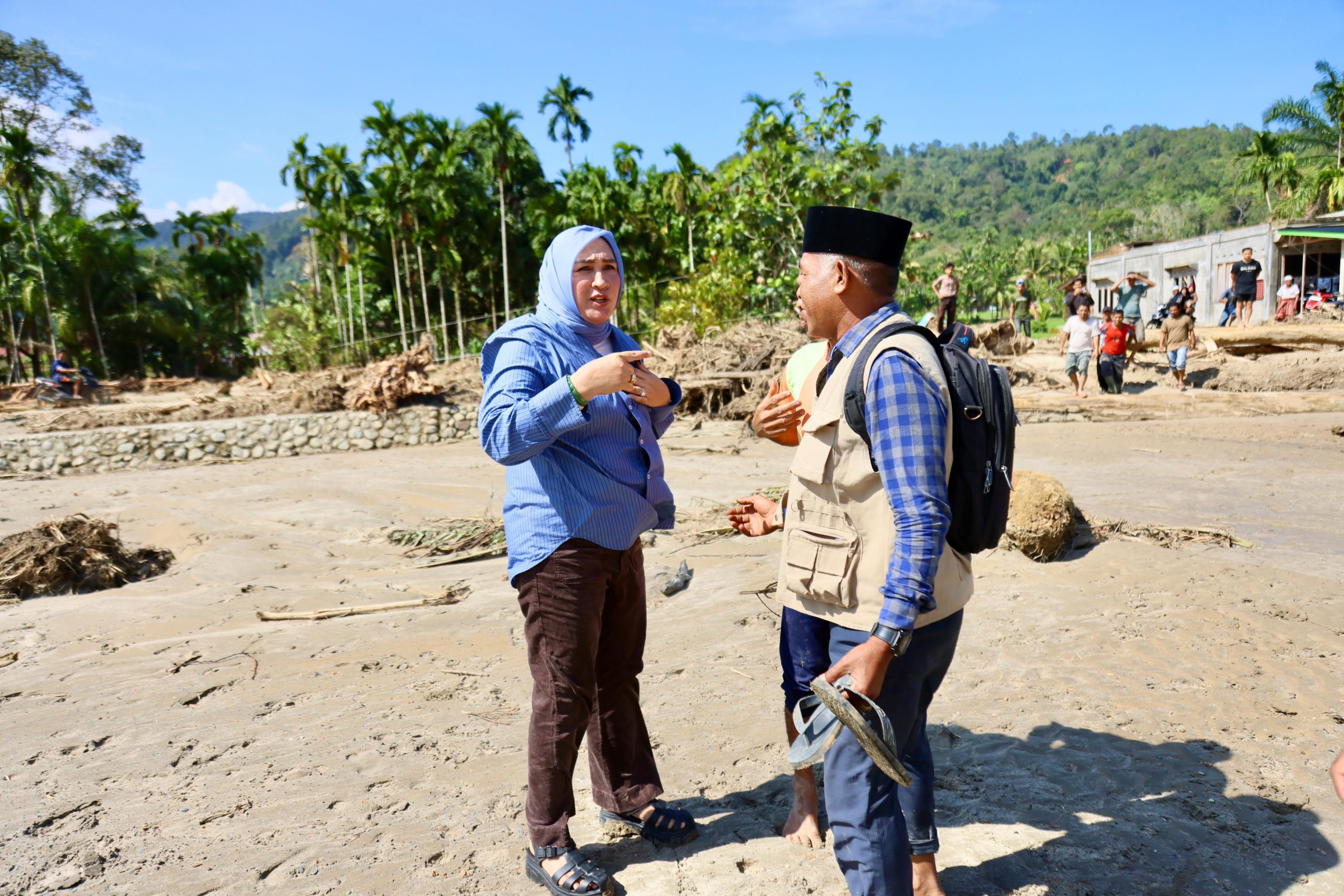 Banda Aceh – Ketua TP PKK Aceh, Marlina Muzakir, berhasil menembus wilayah pedalaman Aceh Timur untuk menyalurkan bantuan ke Lokop, Kamis (4/12). Pengiriman bantuan dilakukan menggunakan helikopter Caracal milik TNI Angkatan Udara, yang dipimpin Mayor Pnb Yusman bersama Kapten Pnb Natan, Lettu Tek Nasrudin, Sertu Manik, Serda Suryo, Praka Ilham, dan Sertu Fachry.