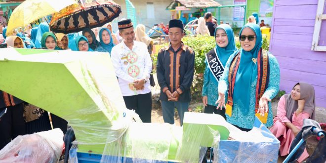 KUTACANE – Pj Ketua TP PKK Aceh, Mellani Subarni didampingi Pj Bupati Aceh Tenggara Syakir dan Pj Ketua PKK Aceh Tenggara Yulia Yusuf, menyerahkan mesin pemipil jagung (cornsheller) kepada PKK Ketambe dalam kunjungannya ke Kampung Kute Ketambe, Kecamatan Ketambe, Aceh Tenggara, Jumat, 2 Agustus 2024. Mesin tersebut merupakan bantuan dari Dinas Pertanian dan Perkebunan Aceh. “Hari ini kami membawa mesin pemipil jagung karena daerah ini adalah penghasil jagung. Semoga bermanfaat,” ujar Mellani saat menyerahkan kunci mesin itu kepada pihak desa.