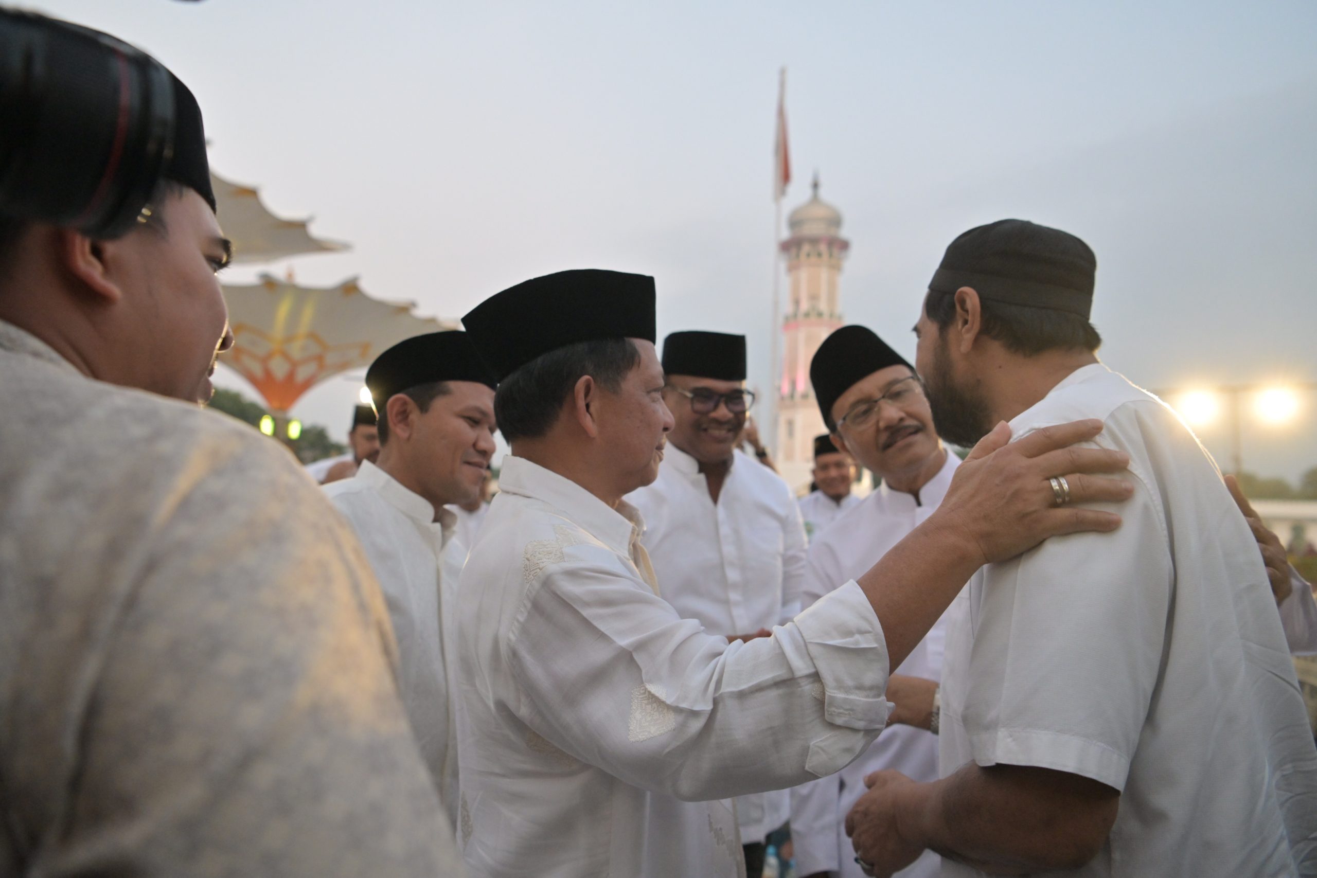 Banda Aceh – Menteri Dalam Negeri Muhammad Tito Karnavian bersama Menteri Sosial Saifullah Yusuf menghadiri buka puasa bersama di halaman Masjid Raya Baiturrahman, Jumat (6/3/2026).