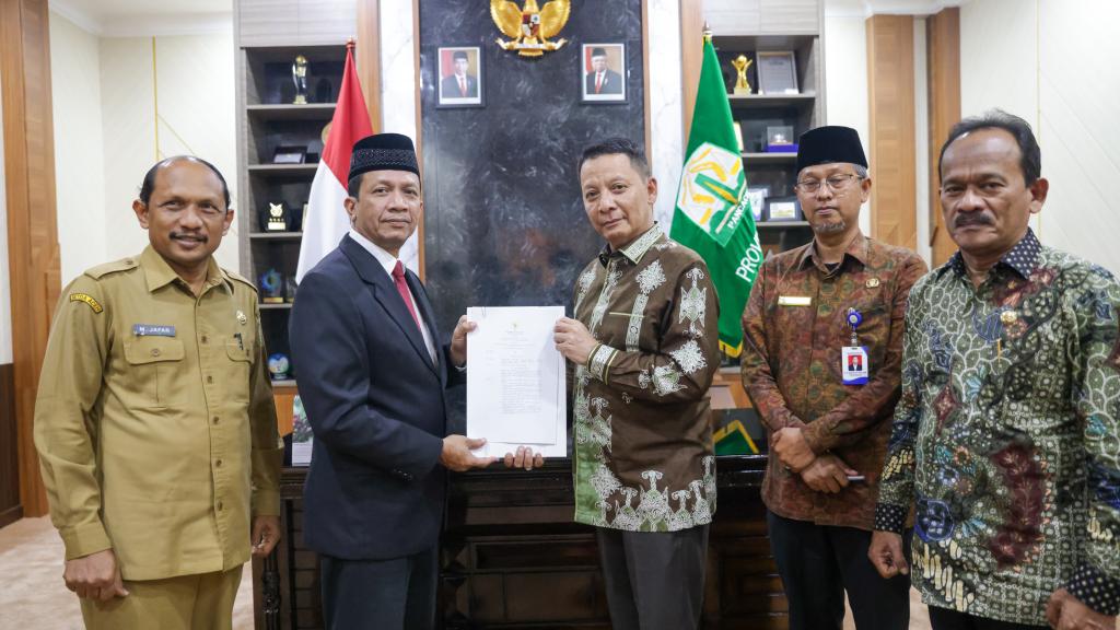 BANDA ACEH – Penjabat Gubernur Aceh Achmad Marzuki, menyerahkan Surat Keputusan Perpanjangan Masa Jabatan Bupati Bireuen dan Aceh Barat Daya dari Menteri Dalam Negeri, di ruang kerja Meuligoe Gubernur Aceh, Selasa (15/8/2023) sore.