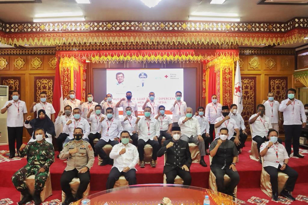 Banda Aceh – Pelaksana Tugas Gubernur Aceh Nova Iriansyah membuka musyawarah luar biasa Palang Merah Indonesia (PMI) Provinsi Aceh di Pendopo Gubernur Aceh, Rabu (28/10).