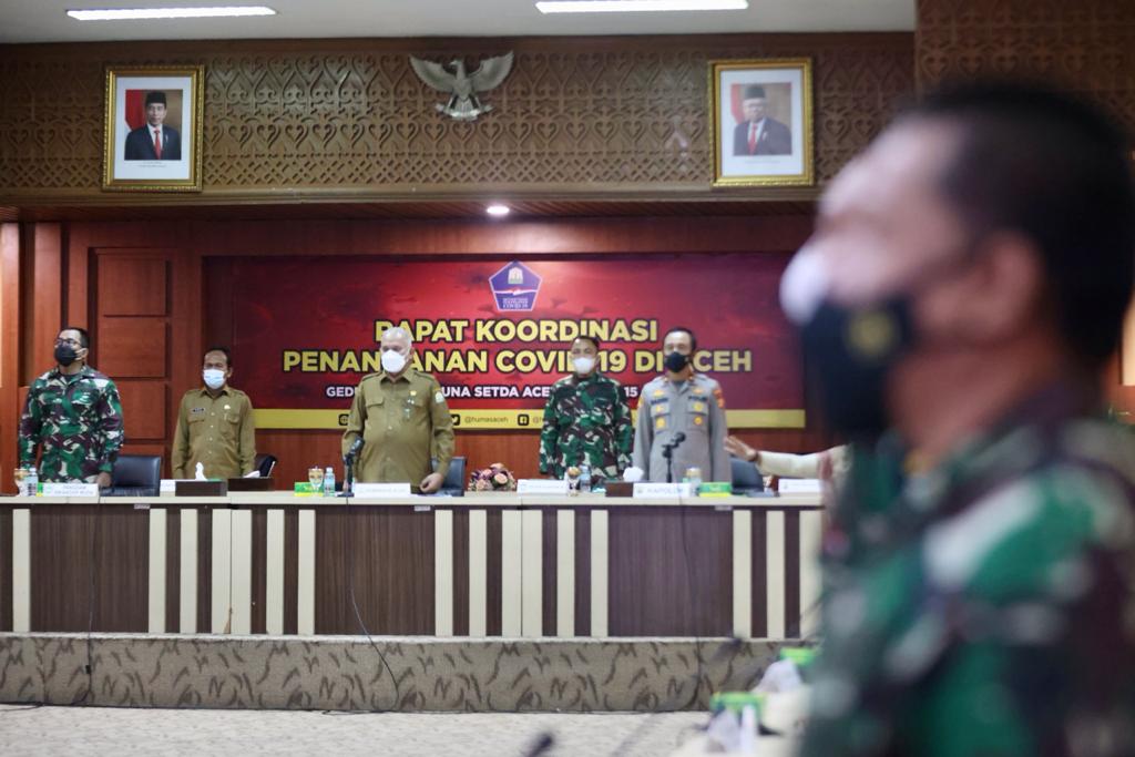 Rakor itu dipimpin oleh Sekretaris Daerah (Sekda) Aceh, dr. Taqwallah M.Kes, bersama Kasdam Iskandar Muda dan Wakapolda Aceh.